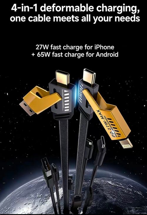 A Kenya Bestseller: 4-in-1 Data Cable — Super Fast Charging, PD 65W Universal High-Power Data Transmission Cable